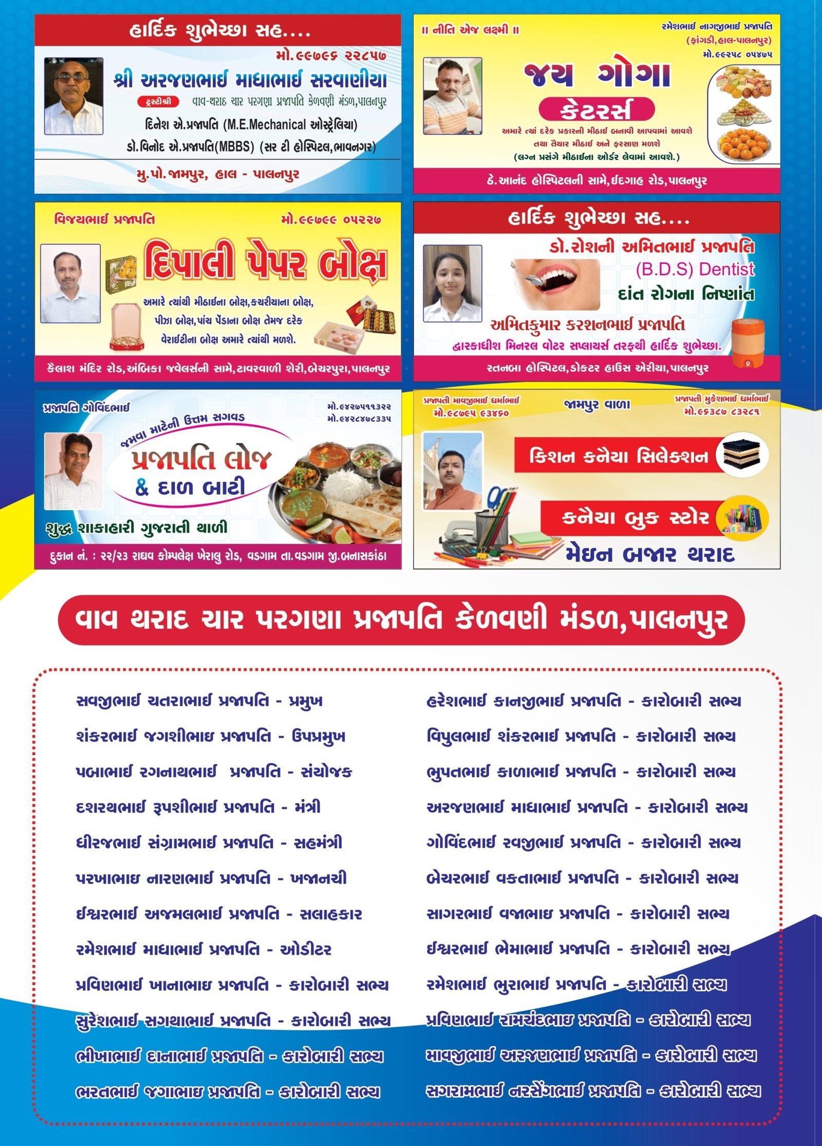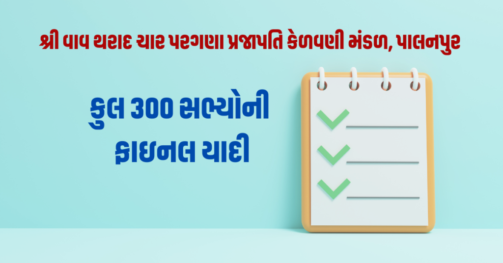 શ્રી વાવ થરાદ ચાર પરગણા પ્રજાપતિ કેળવણી મંડળ, પાલનપુરના કુલ ૩૦૦ સભ્યોની ફાઇનલ યાદી